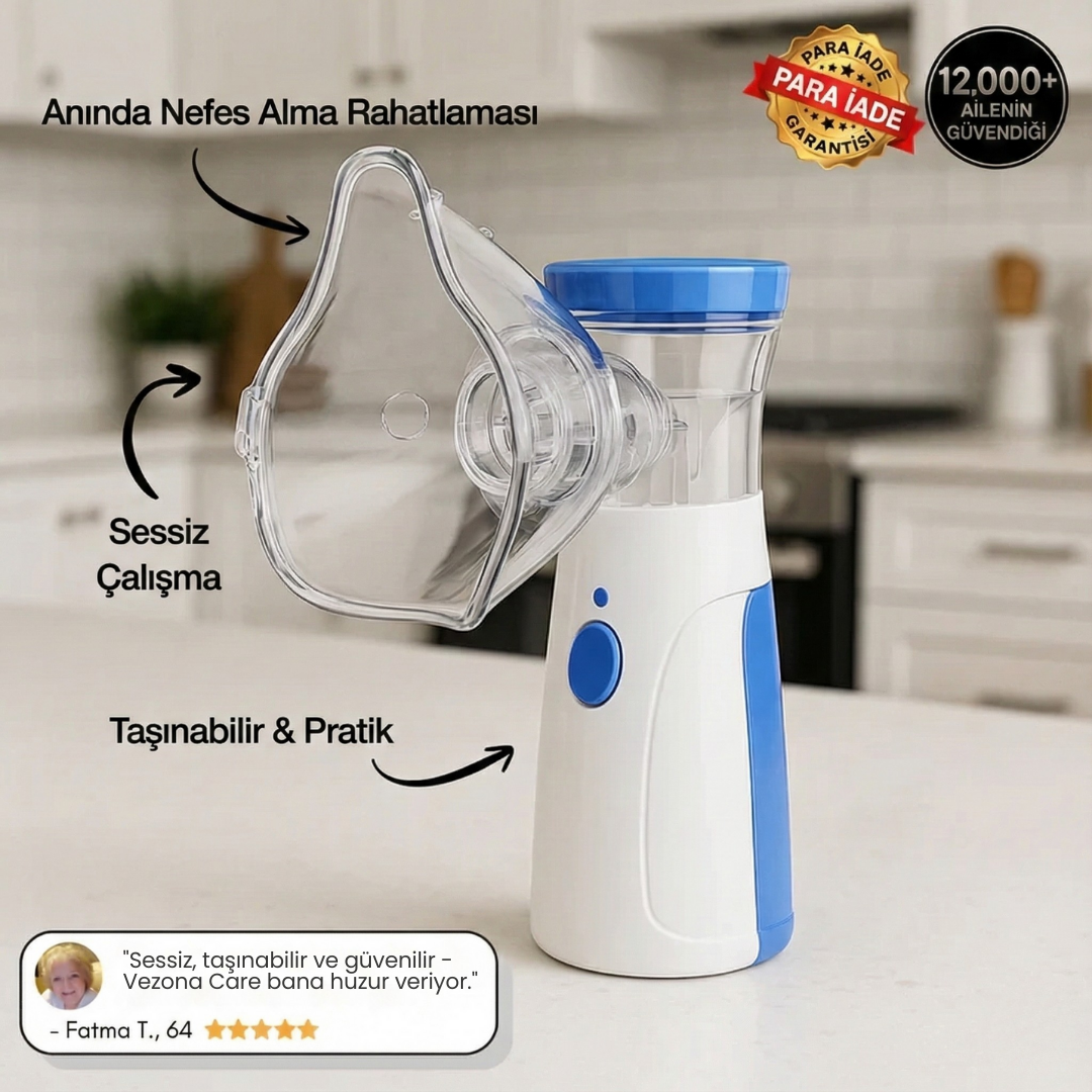 Kesinlikle. Vezona Care, dünya çapındaki hastane ve kliniklerde kullanılan, kendini kanıtlamış aynı ağlı nebulizasyon teknolojisini kullanıyor. FDA onaylı, BPA içermeyen ve özellikle çocuklar düşünülerek tasarlanmış bir ürün. Nazik buhar ve sessiz çalışma özelliği sayesinde psikolojik olarak daha güvenli; korkan çocuklarda korku veya direnç oluşmuyor.